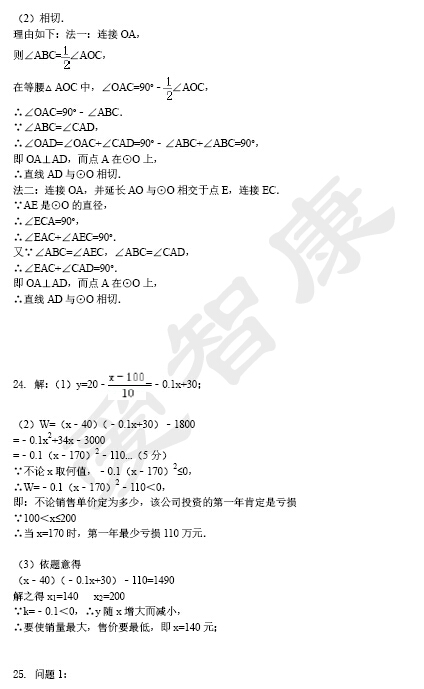 2014-2015年南京29中第二次月考试卷答案(3)
