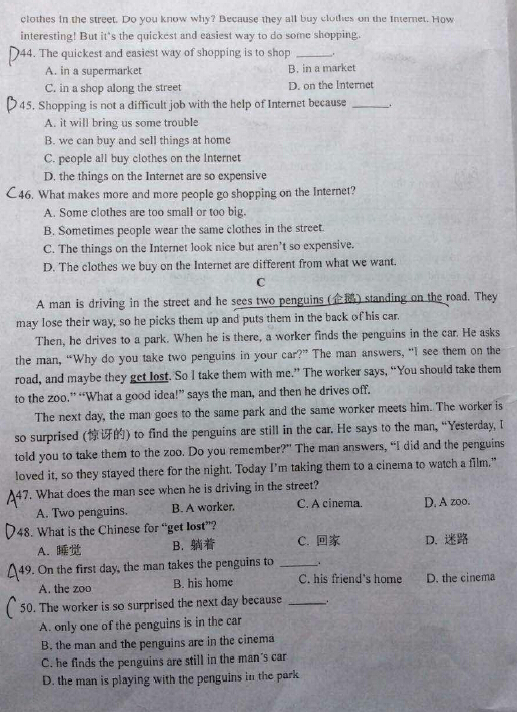2016初一上钟英中华联考英语期末考试试卷(4)