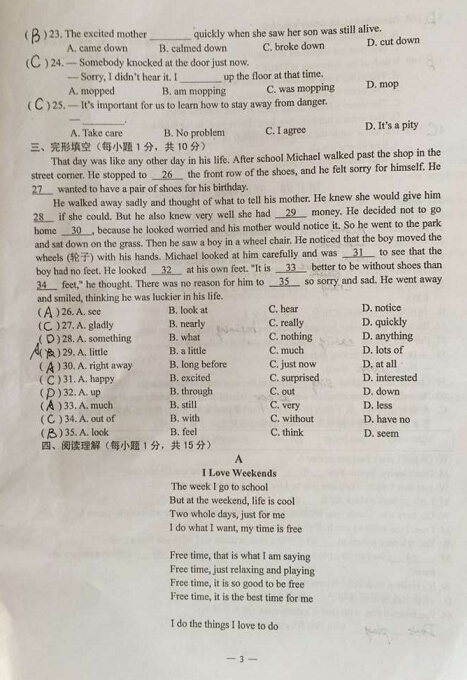 2015-2016学年初二上期末玄武区统考英语试卷(3)