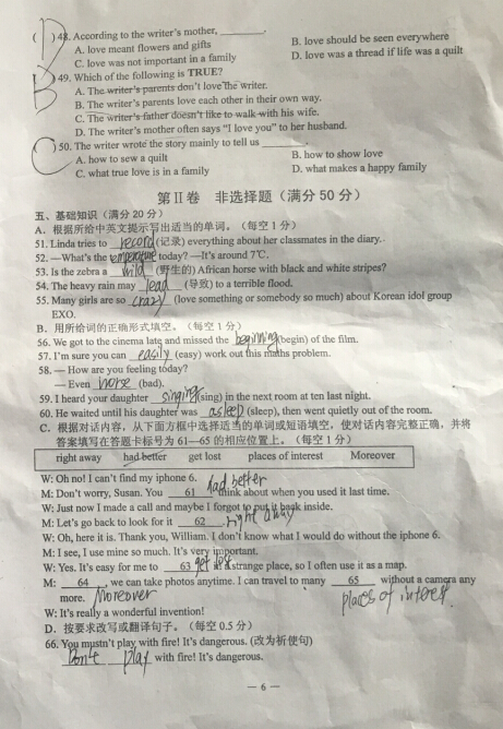2015-2016八年级(上)玄武区期末英语试卷(6)