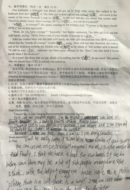 2015-2016八年级(上)玄武区期末英语试卷(8)