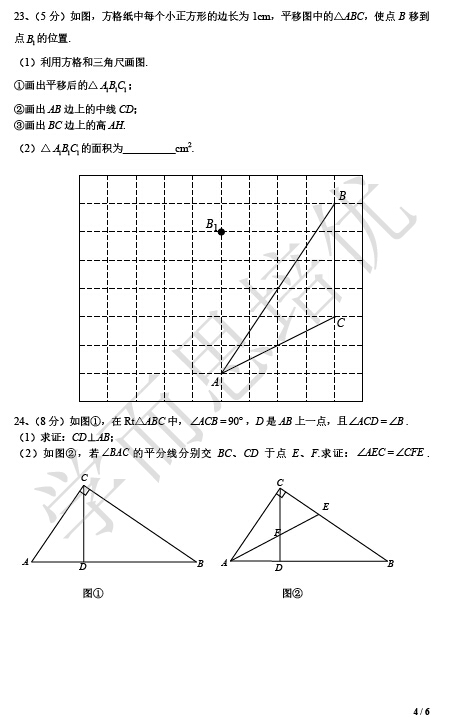 2016年南京秦淮区初一下学期期末数学试题(4)