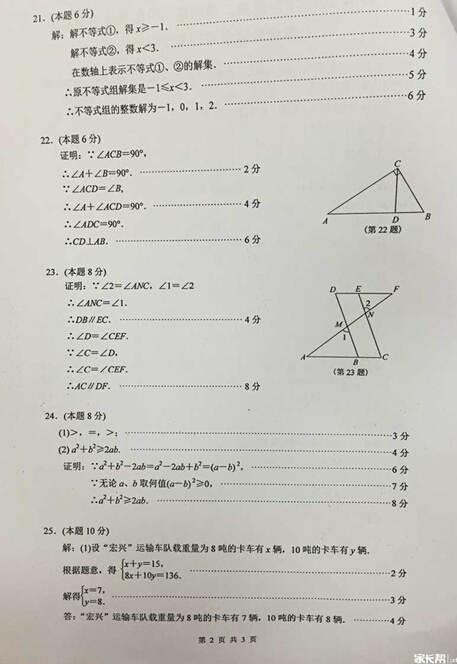 2015秦淮区七年级(下)期末数学试卷答案(2)