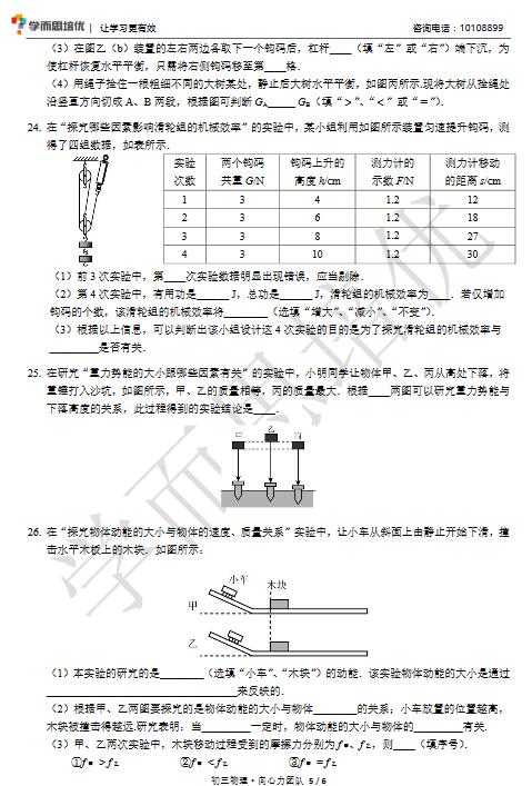 2015年10月南京二十九中初三物理月考试题(5)