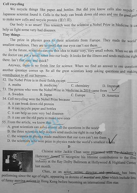 2016-2017学年南京鼓楼区初三期末英语试题(7)