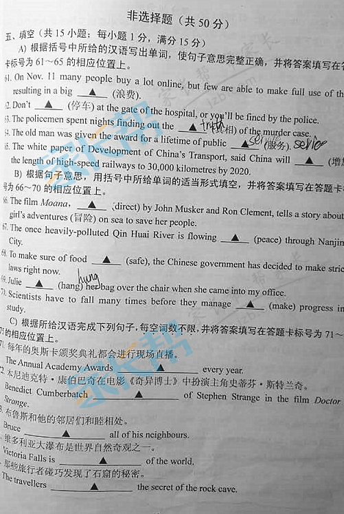 2016-2017学年南京鼓楼区初三期末英语试题(9)