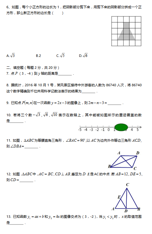 2016-2017学年南京鼓楼区八年级期末数学试题(2)