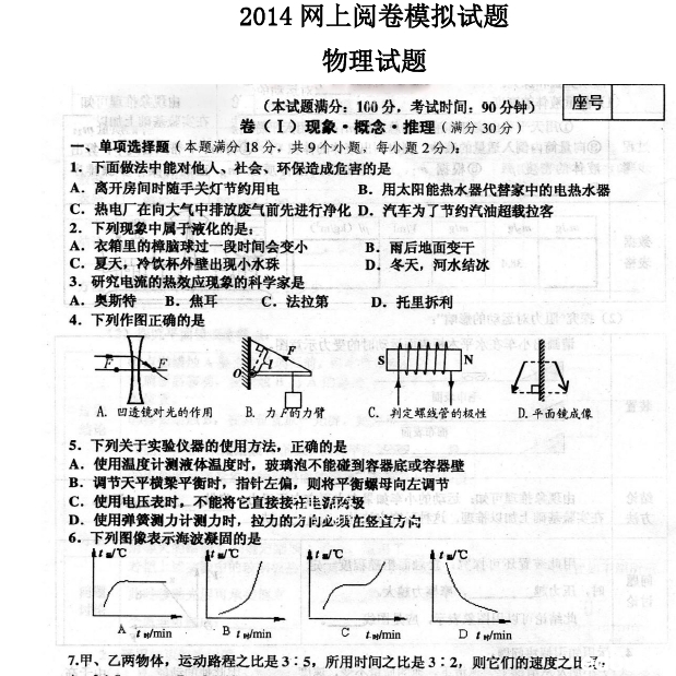 2014年青岛市市北区5月二模物理试题【查看原帖并参与讨论:2014年青岛市市北区5月二模物理试题】