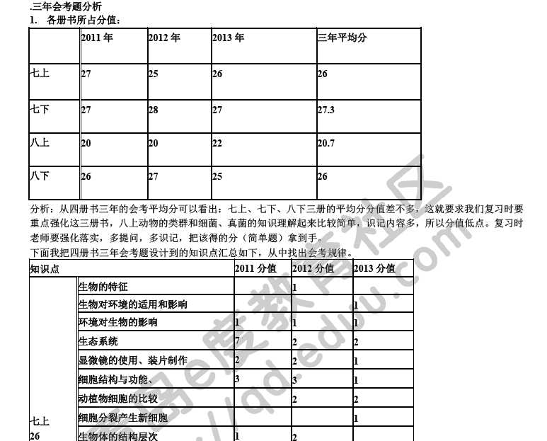 青岛中考网讯 中考网为大家整理了2011-2013三年青岛生物会考题分析,具体如下。