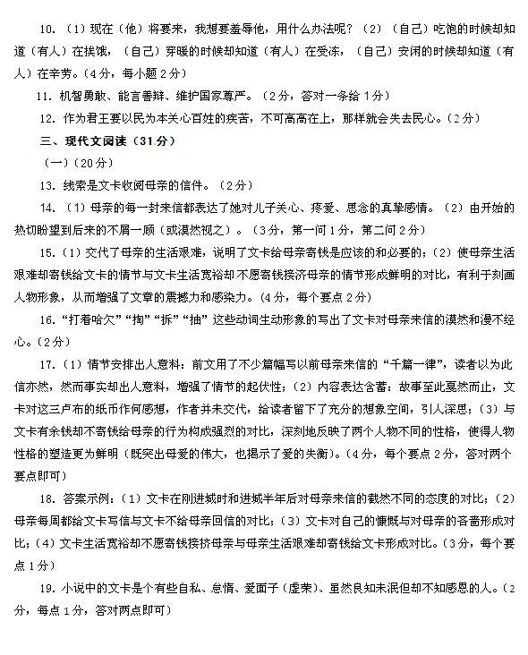2014届青岛城阳区第六中学九年级5月模拟考试语文试题答案(2)