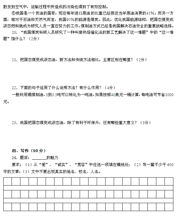 2014届青岛城阳区第六中学九年级5月模拟考试语文试题(7)