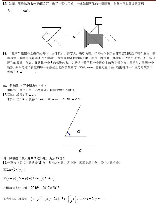 2015-2016学年青岛26中七年级第二学期期末数学试题(3)
