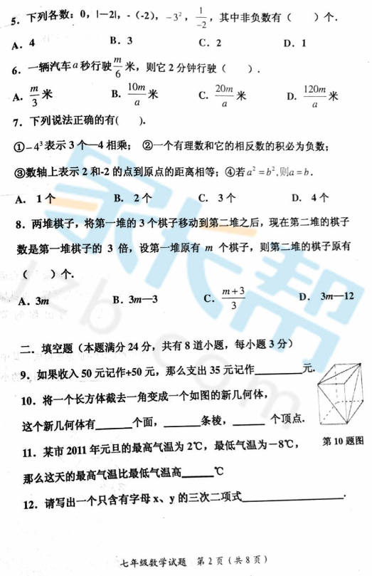 2016-2017学年市北七年级第一学期期中数学试题(2)