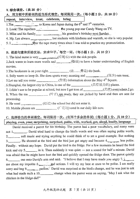 2016-2017学年市北九年级统考第一学期期中英语试题(7)