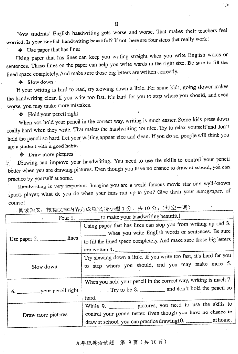 2016-2017学年市北九年级统考第一学期期中英语试题(9)