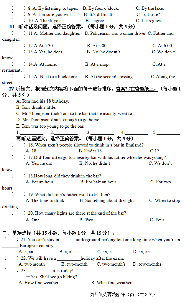 2016-2017学年青岛五中九年级第一学期期中英语试题(2)