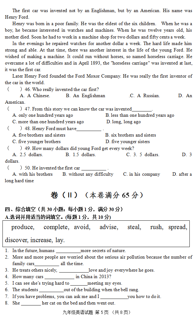 2016-2017学年青岛五中九年级第一学期期中英语试题(5)