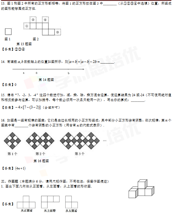 2016-2017学年市北七年级第一学期期中数学试题答案(3)