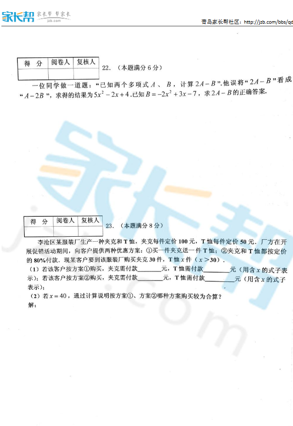 2016-2017学年青岛李沧区七年级统考第一学期期中数学试题(7)