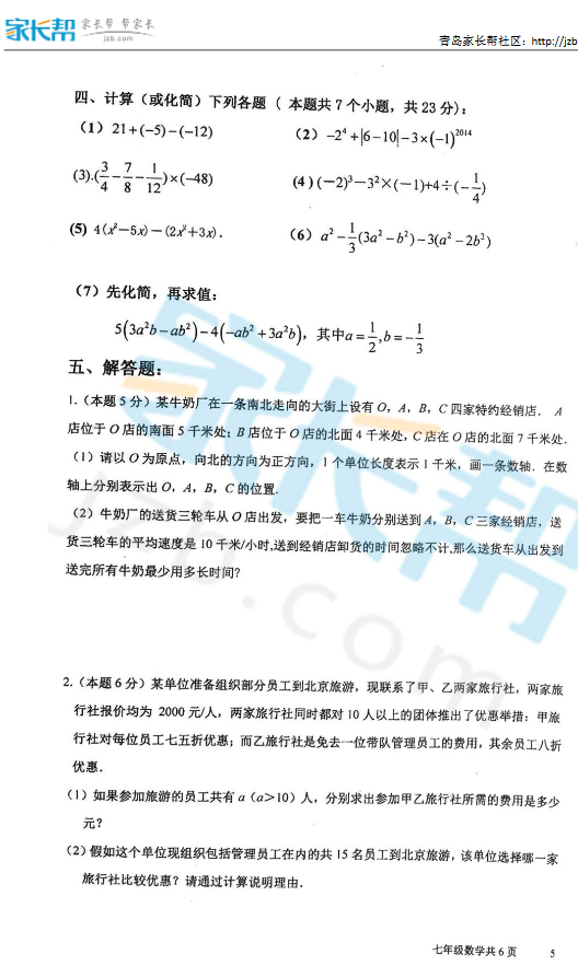 2016-2017学年育才七年级第一学期期中数学试题(5)