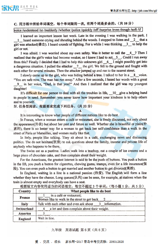 2016-2017学年市南九年级第一学期期末英语试题(6)