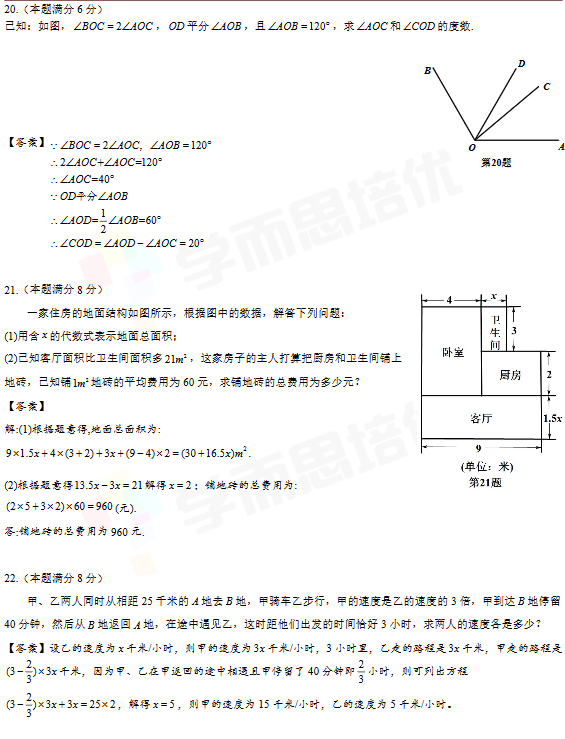 2016-2017学年青岛市南区七年级第一学期期末数学试题答案(5)