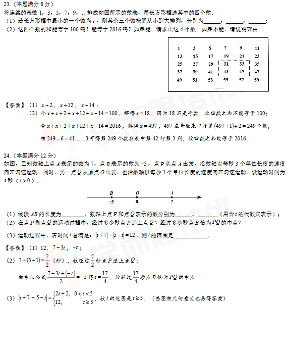 2016-2017学年青岛市南区七年级第一学期期末数学试题答案(6)