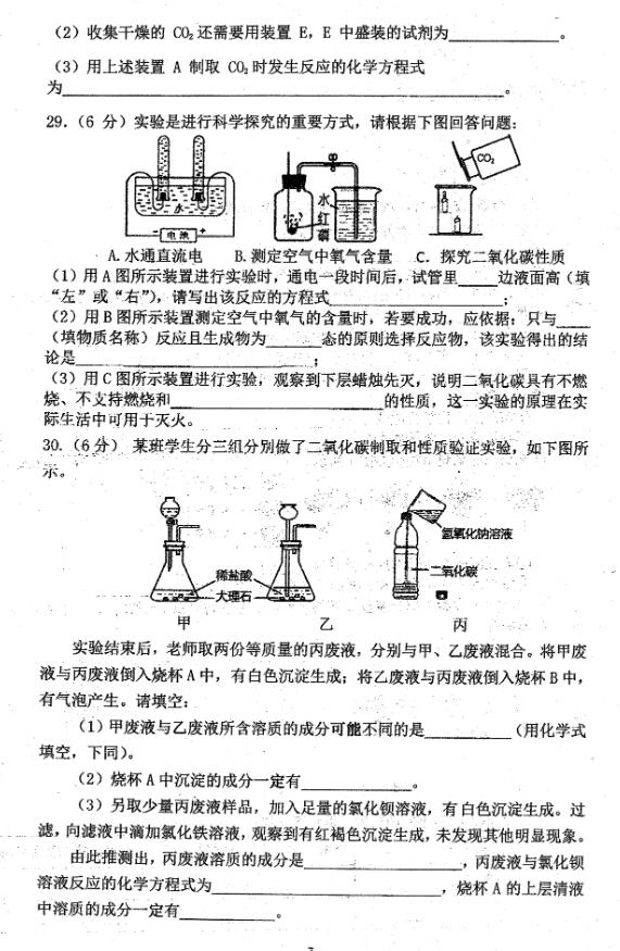 2016-2017学年度青岛育才中学初三期初考化学试题(7)