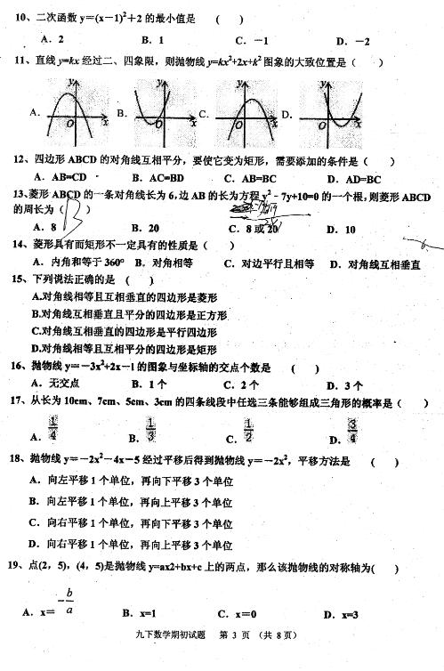 2016-2017学年青岛第37中学期初模拟考试数学试题(3)
