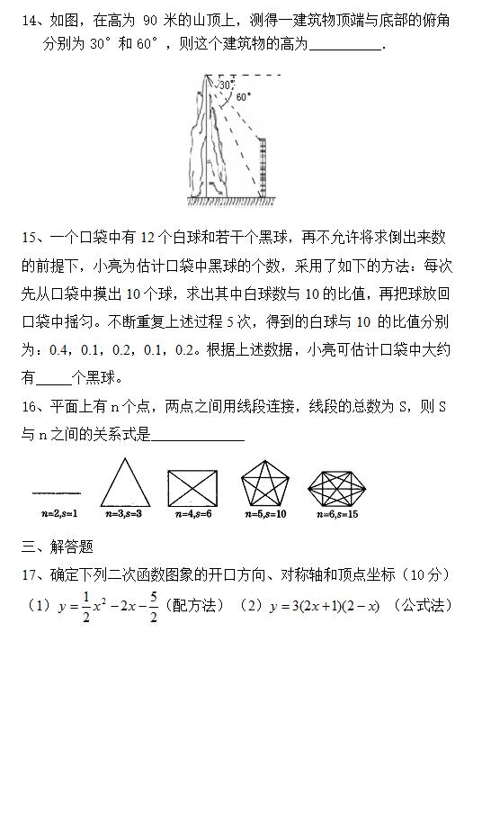 2017年青岛九年级月考数学试题(3)