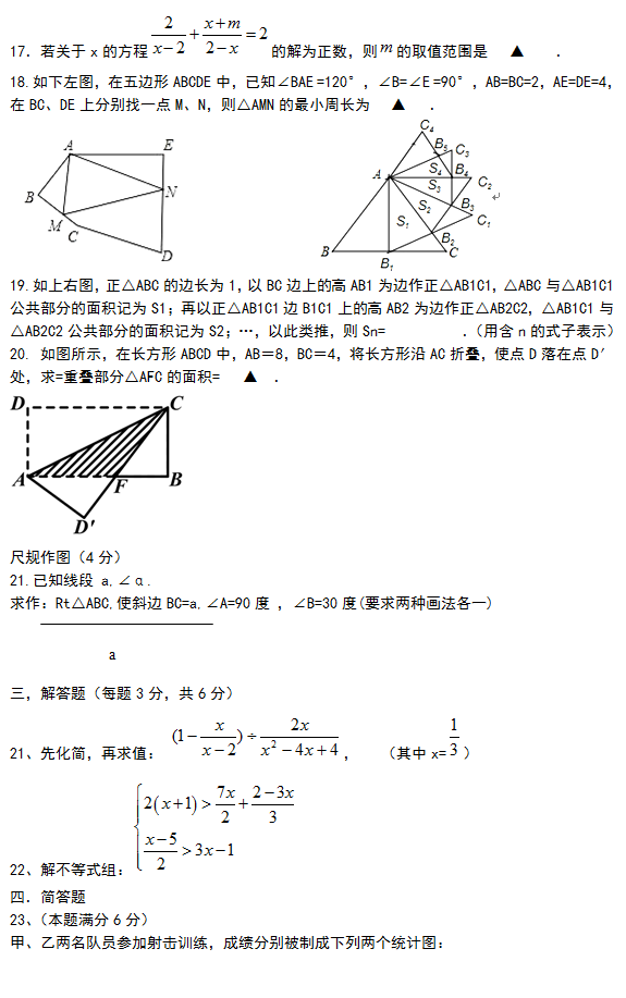 青岛市九年级上学期入学期初考模拟数学题(3)