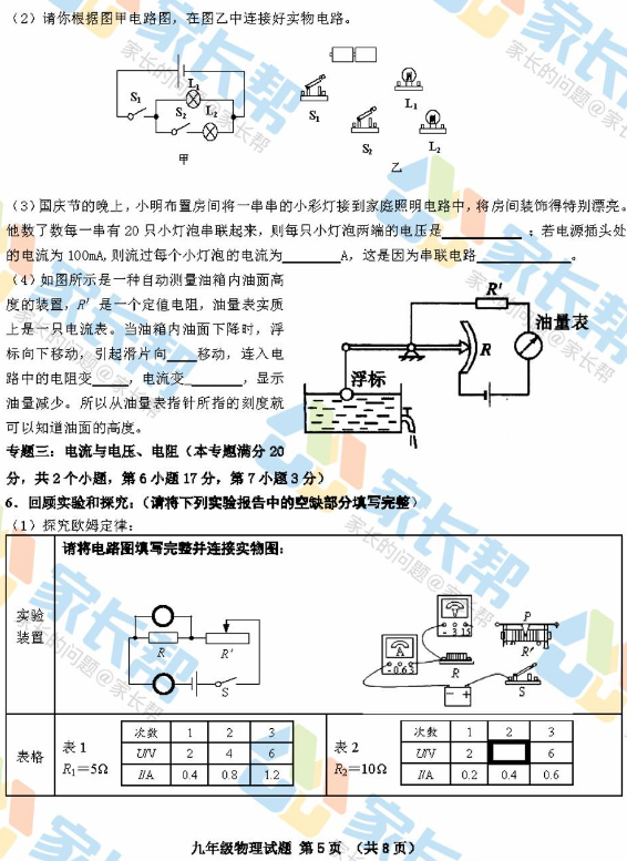 2016-2017学年崂山九年级第一学期期中物理试题(5)