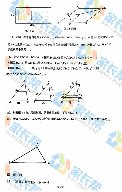 2017-2018学年青岛26中,7中,59中九年级上期中数学试题(3)