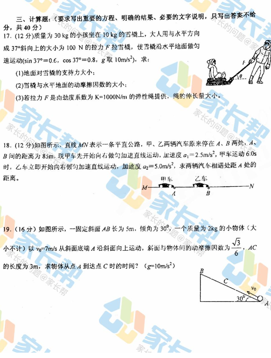 2016-2017学年青岛二中高一第一学期期末物理试题(7)