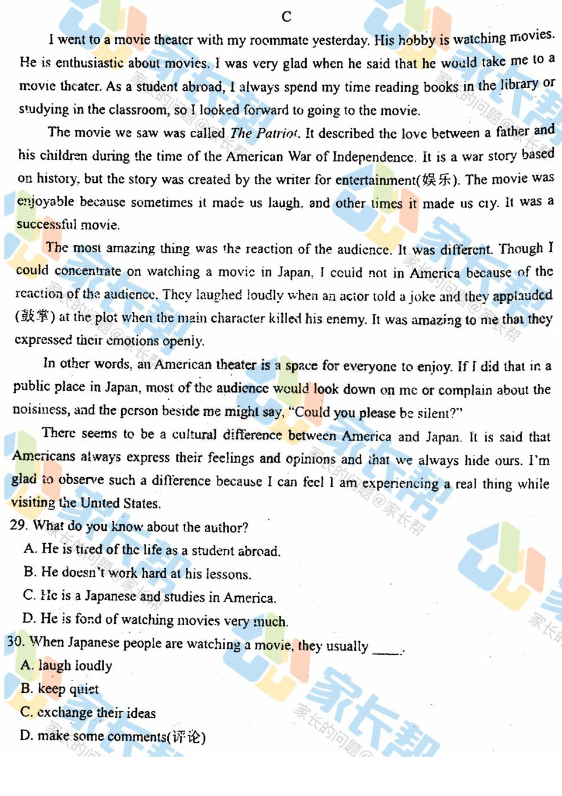 2016-2017学年青岛二中高一第一学期期末英语试题(5)