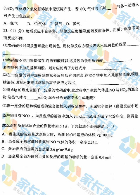 2016-2017学年青岛二中高一第一学期期末化学试题(7)