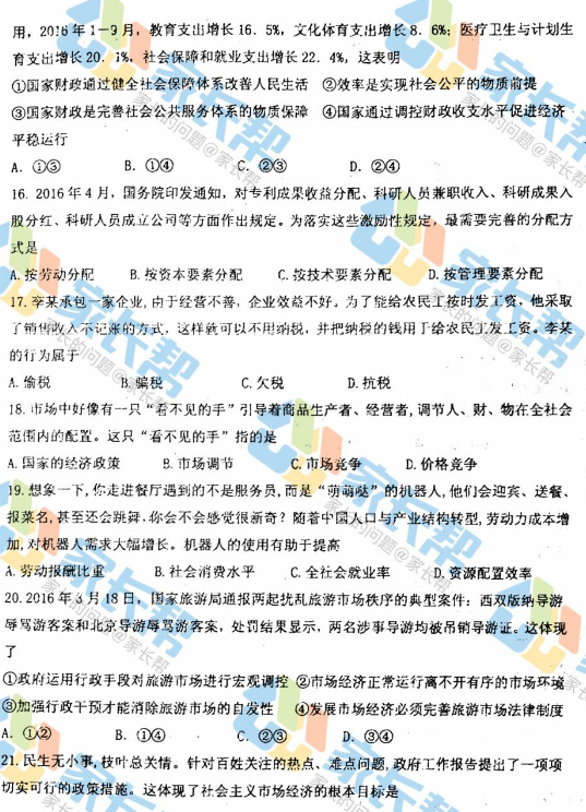 2016-2017学年青岛二中高一第一学期期末政治试题(4)