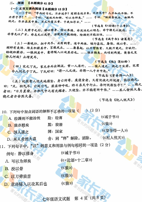 2017-2018学年青岛市北区初一期末语文试题(4)