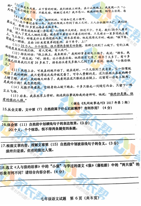 2017-2018学年青岛市北区初一期末语文试题(6)