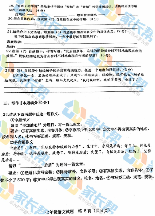 2017-2018学年青岛市北区初一期末语文试题(8)