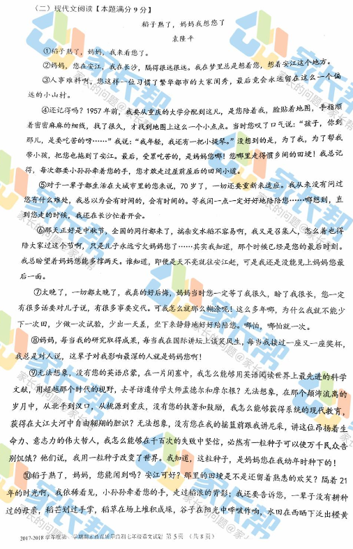 2017-2018学年青岛市南区初一期末语文试题(5)