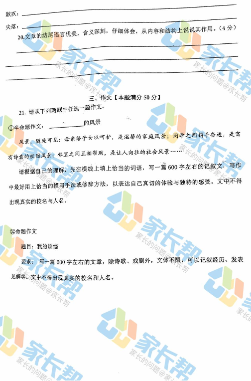 2017-2018学年青岛市南区初一期末语文试题(8)