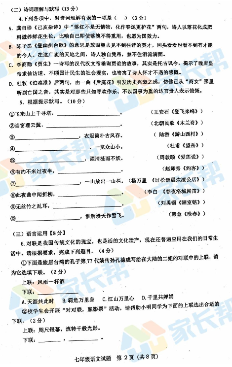 2017-2018学年青岛市南区七年级第二学期期末语文试题(2)