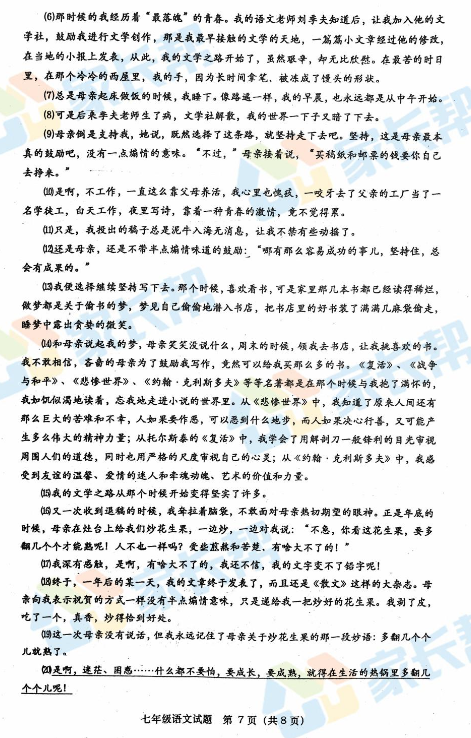 2017-2018学年青岛市南区七年级第二学期期末语文试题(7)