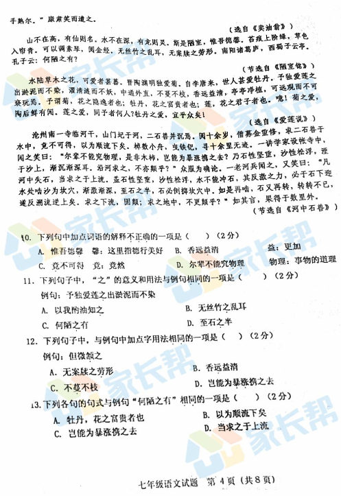 2017-2018学年青岛市北区七年级第二学期期末语文试题(4)