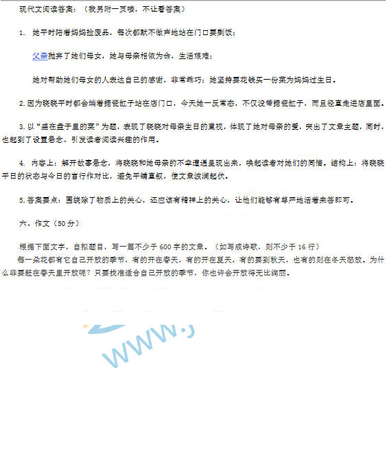 2015年青岛超银(广饶路)中学新初一期初考试语文试卷(5)