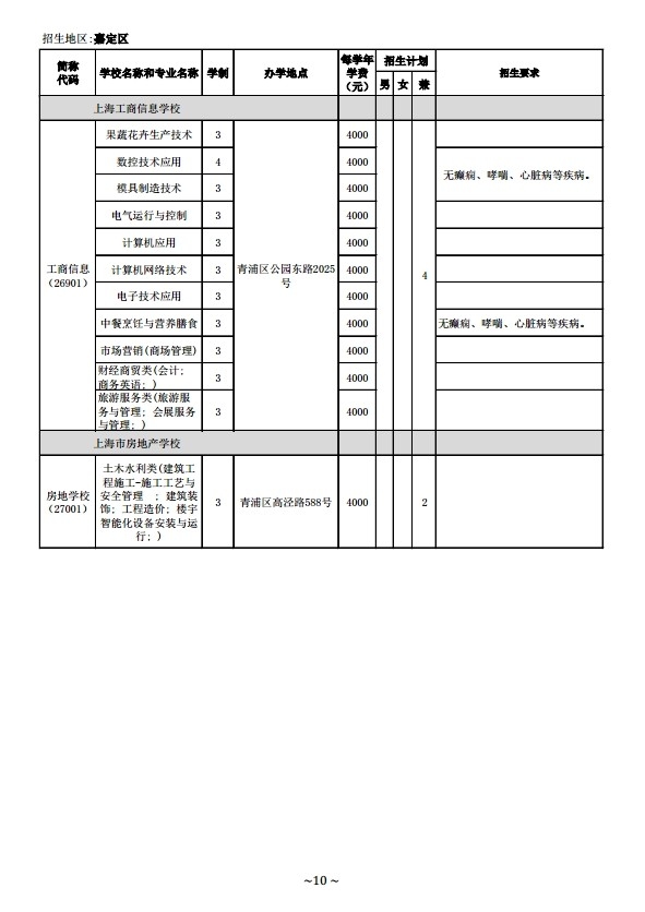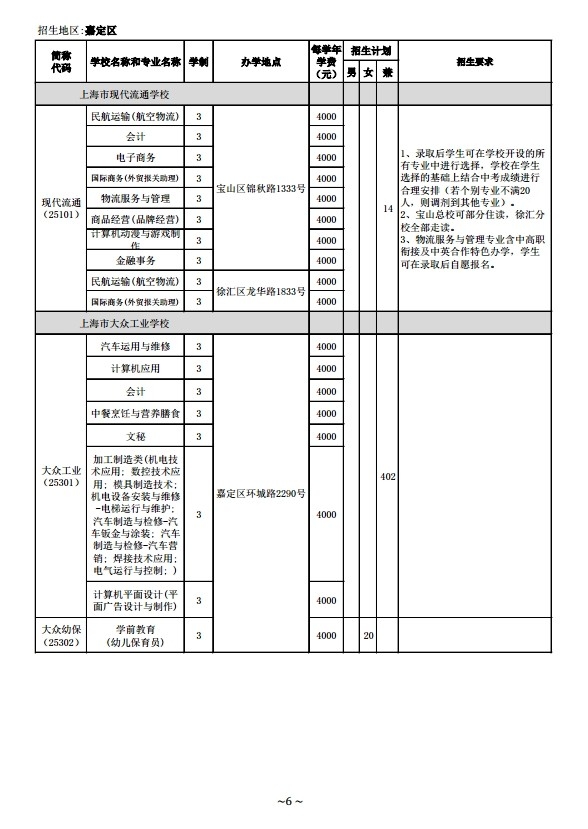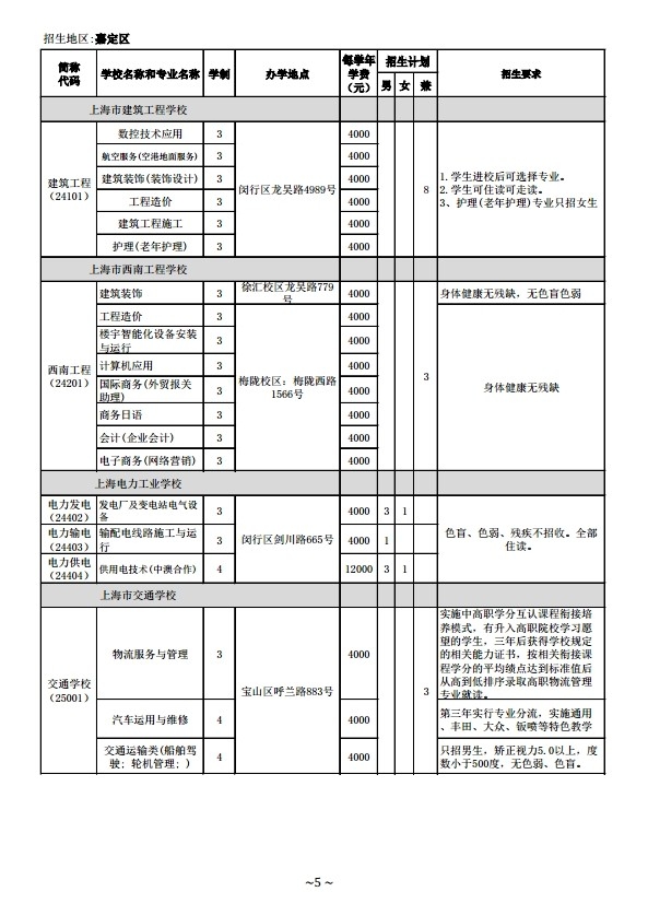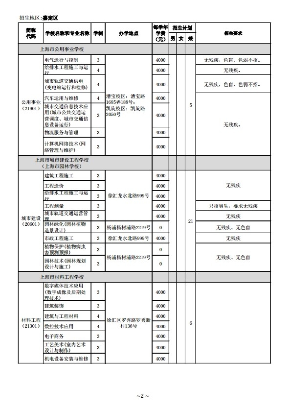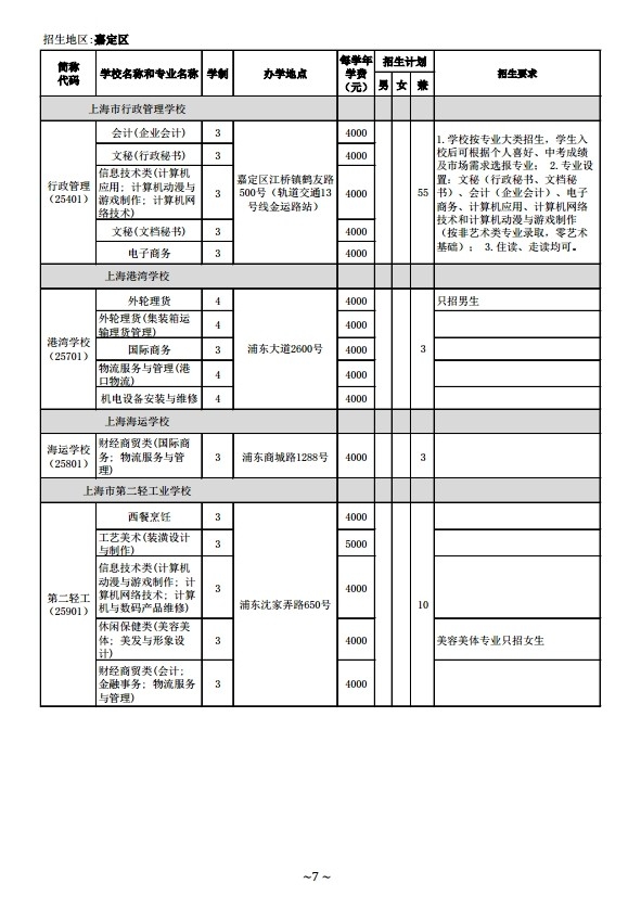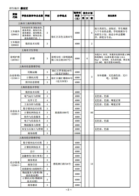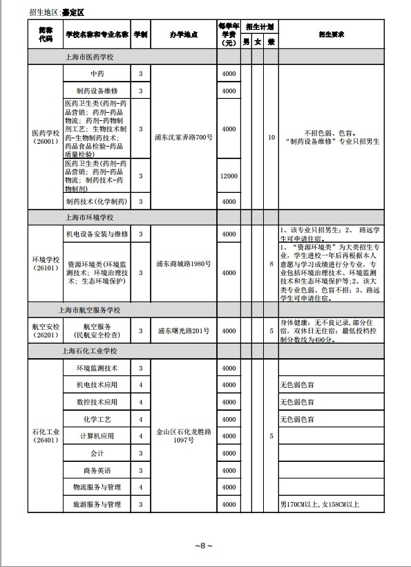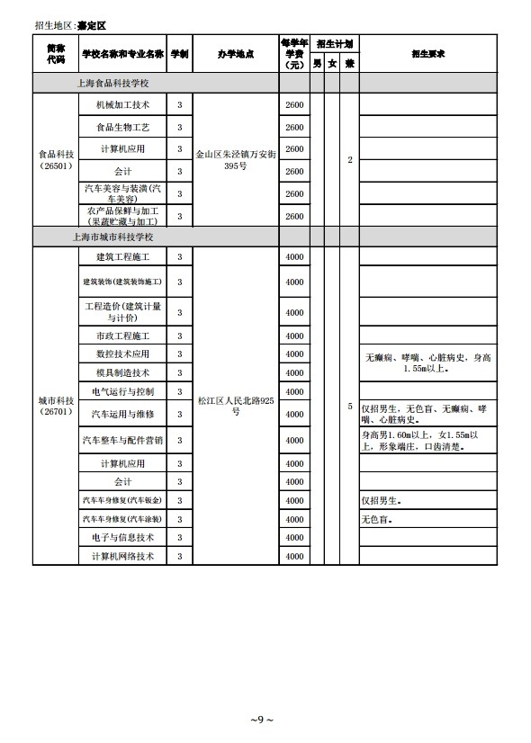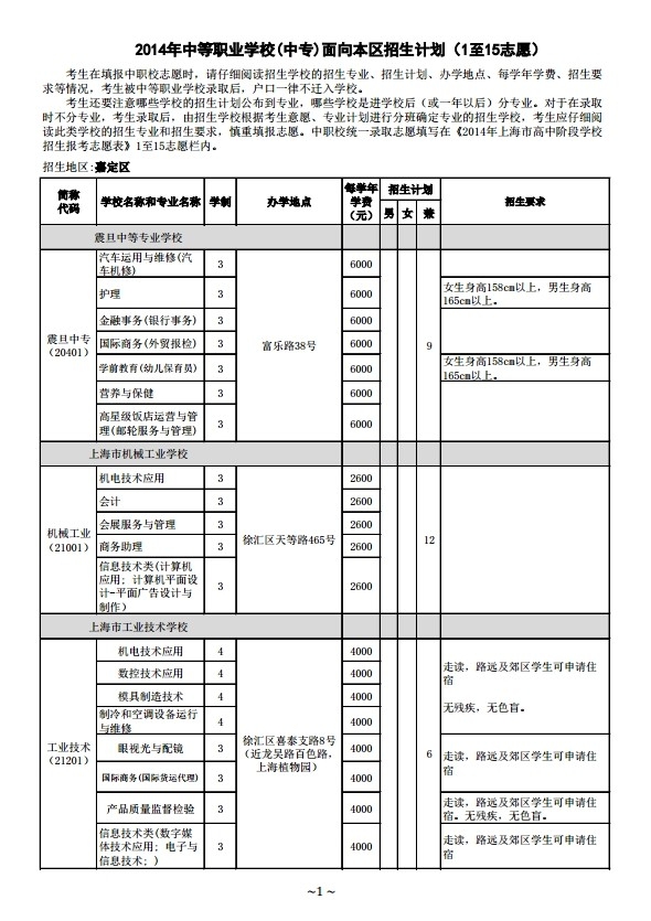 2014年中等职业学校(中专)面向嘉定区招生计划(1至15志愿)