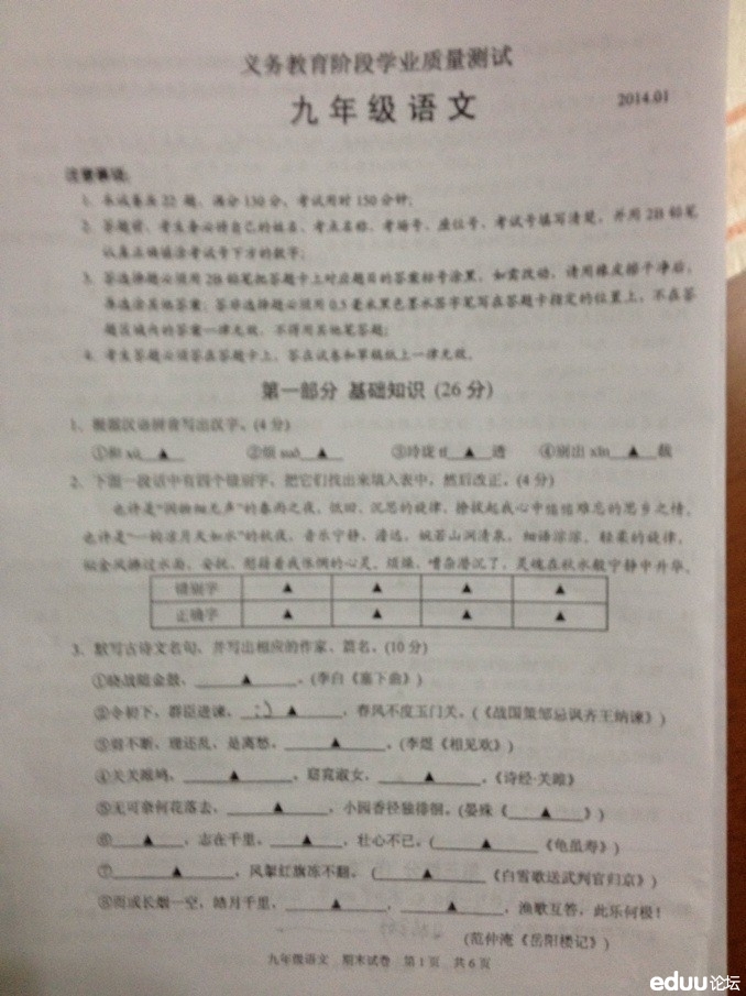 2013-2014学年振华中学初三期末语文试卷 2014-01-21 15:24:11amy就是我 苏州中考网1月20日:e度论坛网友“甜心”在论坛上分享了此次振华中学初三语文期末考试的试卷,供家长们参考。[查看原帖参与讨论]