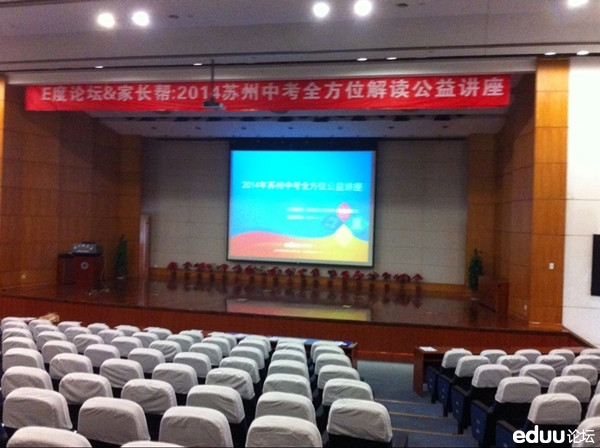 苏州中考网:4月7号的“e度论坛&家长帮:2014年苏州中考全方位解读讲座”活动在下午两点如约开始,苏州e度论坛的叮当做主持,先来奉上今天活动的主要内容: