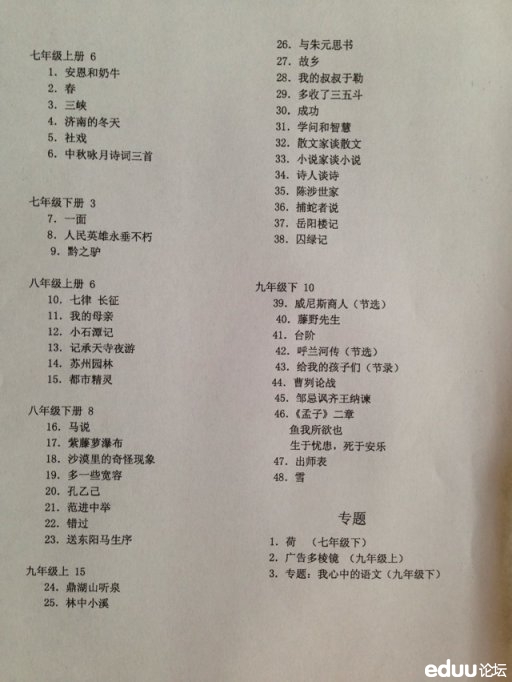 【查看原帖并参与讨论:2014年中考语文科目关键课文考试范围】